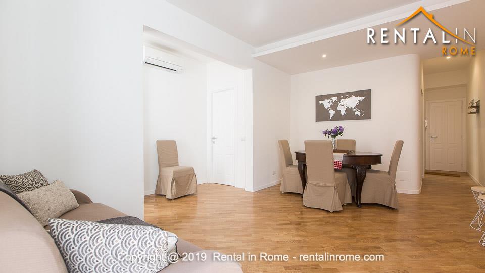 Светлая квартира расположена на третьем этаже здания без лифта на улице Джулия, в самом сердце исторического центра, недалеко от Пьяцца Навона, базилики Сан-Пьетро, Кастель Сант-Анджело и Кампо-де-Фиори, района, известного своими местный рынок, который проходит каждое утро. Со вкусом обставленные, сочетающие современность и классику, они состоят из большой и светлой гостиной с диваном-кроватью, удобной спальни с двуспальной кроватью, ванной комнаты с душем, современно оборудованной полуобитной кухни. Квартира очень тихая, несмотря на то, что она находится в районе с оживленной ночной жизнью, в центре исторического центра Рима. Удобства, которые включают в себя кондиционер, Wi-Fi, Smart TV, стиральную и посудомоечную машины, а также эксклюзивное расположение, которое позволяет вам посетить самые важные памятники города пешком, делают его идеальным для прекрасного отдыха в Вечном городе.