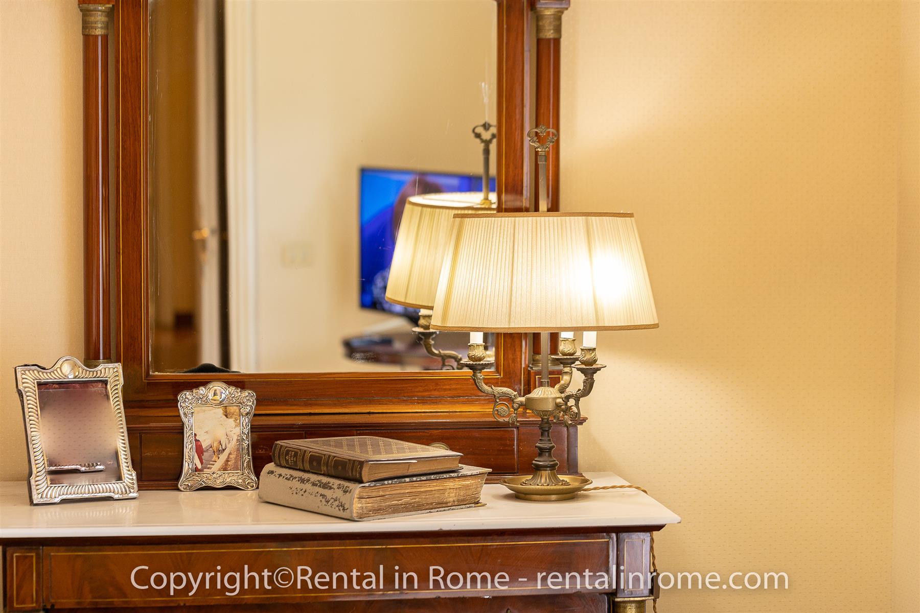 L’appartamento si trova al 2° piano di una signorile palazzina immersa nel verde dotata di ascensore. Composto da ampio soggiorno con divano e angolo pranzo più un magnifico balcone terrazzato con vista sul verde, due camere matrimoniali e una terza camera con funzione studio e sala tv con divano letto, due grandi bagni e una quarta camera di servizio con piccolo bagno e zona lavanderia. Balcone perimetrale e una stupenda e moderna e attrezzata cucina completano questo elegantissimo appartamento. L'immobile Dotato di Smart tv, lavastoviglie e lavatrice, aria condizionata . Arredamento di altissima qualità e la collocazione eccellente in una tranquilla e verde zona a due passi dal centro storico di Roma completano questo prestigioso appartamento.