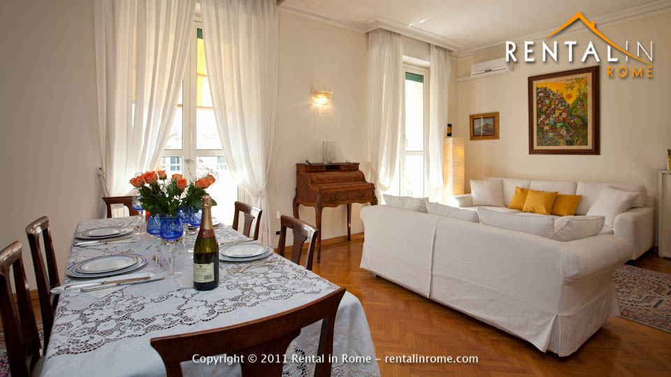 This elegant 90 square-meter apartment is located on Via Annia, in the Celio district, a short walk from the Colosseum and the Domus Aurea. The apartment is located on