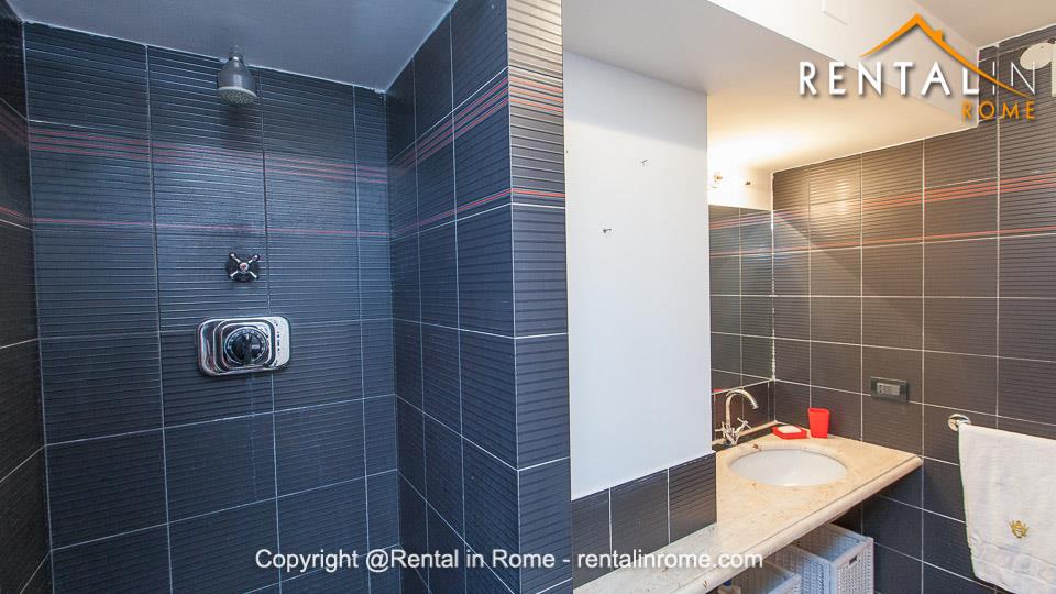 Élégant appartement situé au deuxième étage d'un immeuble sans ascenseur situé à Via dei Crociferi, à quelques pas de la fontaine de Trevi et à quelques pas du Panthéon, du Palais du Quirinal, et de la place d'Espagne et des boutiques de la Via del Corso. Accessible par deux rampes d'escaliers et meublé dans un style moderne, l'appartement se caractérise par des poutres apparentes et se compose de deux chambres (un lit double et deux lits a une place) vous accédez à un beau balcon donnant sur une cour intérieure, une salle de séjour avec canapé-lit et coin-repas, une kitchenette entièrement équipée et deux salles de bains avec douche. En outre, équipements, comme la climatisation, TV LCD, coffre-fort, machine à laver et lave-vaisselle et l'emplacement exclusif qui permet la visite à pied de la vieille ville en font une solution de logement idéale pour passer de merveilleuses vacances dans la ville éternelle.