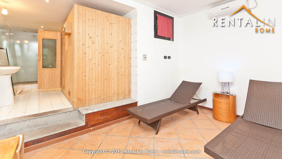 Wonderful luxury villa located in Vicolo Antoniniano, a few steps away from San Sebastiano public park and close to Caracalla’s Baths, the Circus Maximum, the Coliseum, the Basilica of San Giovanni in Laterano and the Ancient Appian Way. Surrounded by a magnificent 3000 m² private park enriched by centuries-old pine trees and relics witnessing ancient Rome’s greatness, it is comprised of a large hall, two comfortable double bedrooms (one provided with en-suite bathroom with jacuzzi bath-tub), two twin bedrooms, a bedroom with double sofa bed, a spacious walk-in wardrobe, a dining room with fireplace, a fully equipped kitchen, three beautiful living rooms (one with fireplace), two bathrooms with jacuzzi bath-tub and one with shower. A private parking for two cars, a fitness room and a sauna are at our clients’ disposal. All rooms are finely furnished with a classic style adorned by many pieces of art and antiques, and by the beautiful finishes and fittings, such as the gorgeous marble floors. Amenities (including air conditioning, wi-fi, LCD TV, washing machine, dryer, dish-washer and safe), and the exclusive and well-connected location (Line B Subway station CIRCO MASSIMO is at 900 meters) make it an ideal solution for those who wish to spend an unforgettable vacation in the Eternal City.