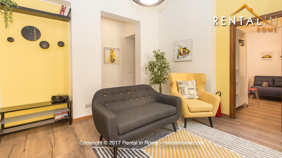 This elegant and quiet apartment is located on the 4 th floor of a building with lift in Via Candia, only a few steps away from the Vatican, its Museums and the Castel Sant’Angelo. The accommodation has recently been renewed in a modern and functional style. It is made up of a large entrance, two comfortable double bedrooms with a desk, LCD TV and air conditioning, a third bedroom with a single sofa bed, a modern living room, a dining area with a fully equipped kitchenette and two bathrooms with shower. Amenities include air conditioning in all rooms, Wi-Fi connection, LCD TV, washing machine and dryer. The subway stop “Ottaviano” of the line A is only a few minutes away from the accommodation. Many important hotspots, such as Piazza del Popolo, the Spanish Steps or the Trevi Fountain, can easily be reached by subway. The central and well-connected location make this apartment the ideal solution for families or groups of friends wishing to spend a pleasant stay in the Eternal City.