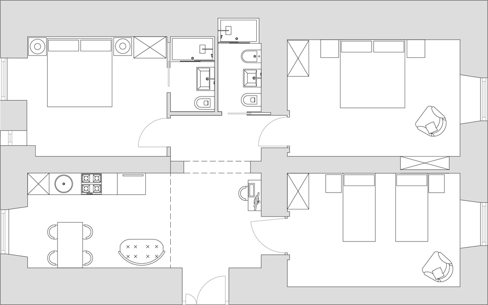 建築家アレッサンドラ・モレッリによって最近改装されたエレガントなアパート。テルミニ駅から数歩離れたリオネ・エスクイリーノの中心部にあるヴィア・ラタッツィの建物の6階の階段からアクセスできます。 2つの快適なダブルベッドルーム(うち1つはシャワー付きの専用バスルーム付き)、2つのエキストラローリングベッド、3つ目のベッドルームにはシングルベッド2台、リビングルームには設備の整った簡易キッチン、2つ目のシャワー付きバスルームがあります。アパートメントには、エアコン、液晶テレビ、wi-fi、金庫2台、防音窓、洗濯機、食器洗浄機が備わっており、黒と白のコントラストで遊ぶモダンで機能的なスタイルが備わっています。中心部に位置し、効率的な公共交通機関ネットワークが提供する優れた接続により、首都での快適な滞在に最適なソリューションとなっています。